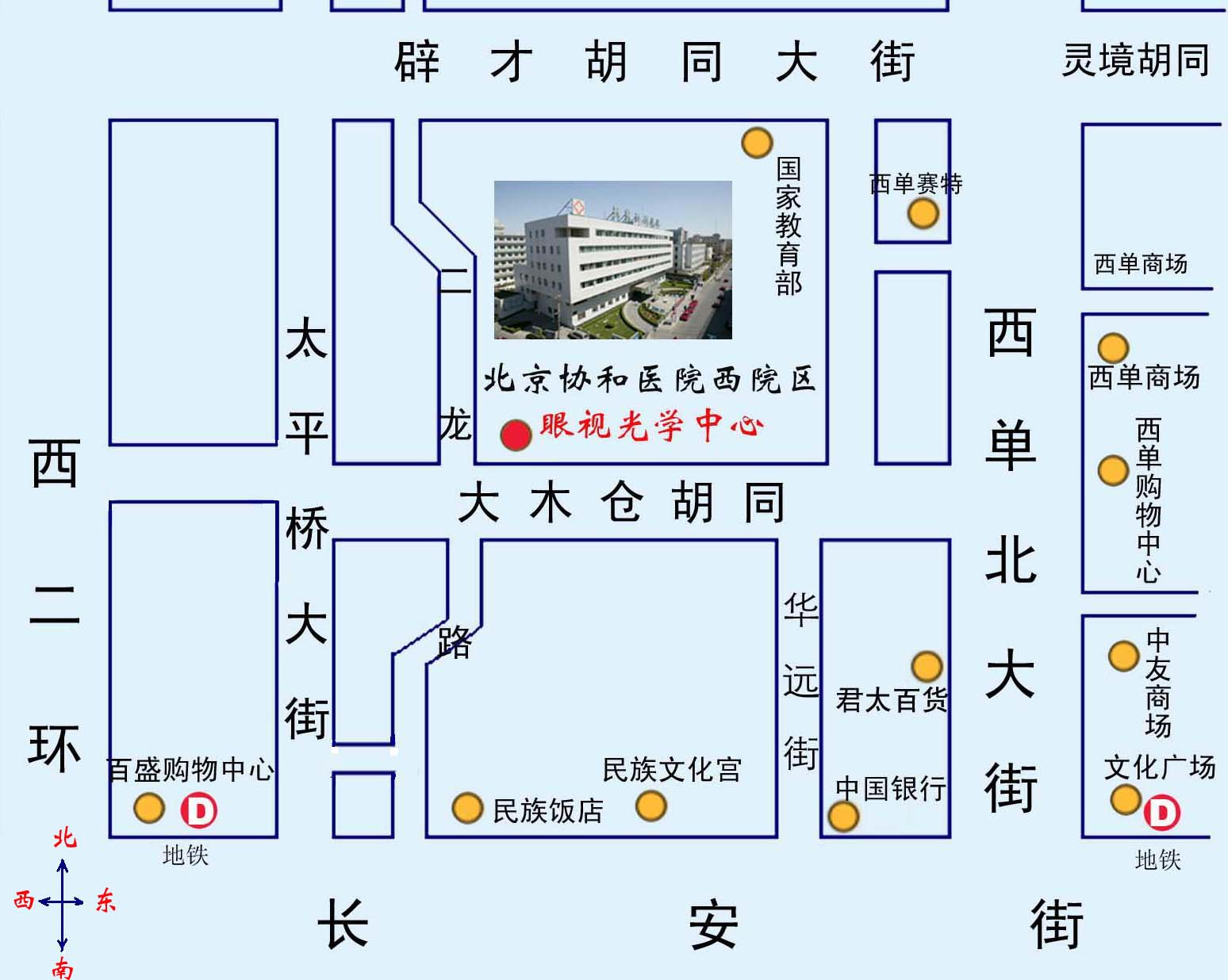 眼视光学中心地址:西单大木仓胡同41号 北京协和医院西院门诊3层