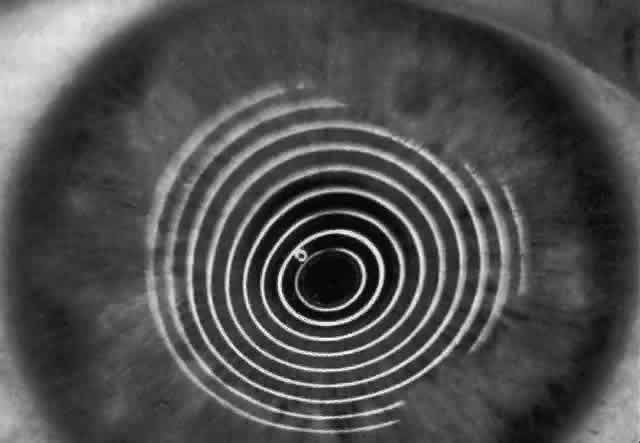 of corneal shape. The first known keratoscope target was the image of a window, as reported by Scheiner in 1619 using natural light. He estimated the corneal curvature by comparing the window pane corneal reflection to those of a series of marbles until he found one that gave an image the same size as that of the cornea.1 In 1820 Cuignet developed a keratoscope through which he observed the reflected image of an illuminated target held in front of a patient's cornea. His major problem was in the alignment of the light, target, and observer with the patient's visual axis. This was overcome in 1882 by Placido, who placed an observation hole in the center of the target.2 Placido's target of alternating black and white rings (the Placido disk) has been embodied in many devices that are currently used to measure corneal topography, hence the term Placido disk keratoscopy. A modern version of the original Placido disk is the Klein hand-held keratoscope (Fig. 1). This device is useful for detecting the location of tight sutures, irregular astigmatism, and keratoconus, all of which can be detected by mire pattern recognition. Its main limitations are that its mire pattern has an outer diameter of 5.5 mm, limiting its utility for evaluating peripheral topography. In addition there is no mechanism to achieve alignment other than user estimation, which introduces significant error in subjective interpretation.1 Photokeratoscopes (e.g., Corneascope: Keravision, Santa Clara, CA) project a series of concentric circular mires that form a virtual image located within the anterior chamber of the eye. Information regarding the power of the anterior corneal surfaces is derived from visual inspection of the size and shape of the mires.