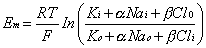 cataract also finally resides in the lens in a complexed form.42,43 It is now generally accepted that the main ionic permeability barriers lie at the outer surface of the lens, whereas the inner fiber membranes present less of a barrier to the flow of ions because adjacentfibers are coupled through gap junctions or become fused or “degenerate.”5,15,31 The relative permeability of the different ionic species can be computed by fitting the Goldman equation44 to the membrane potential and (Em) ionic data: