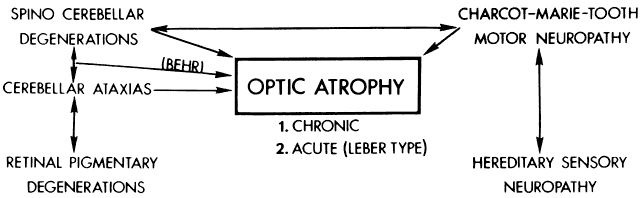 optic atrophy (Fig. 41). Reduction of visual acuity, often unilateral, is encountered in these