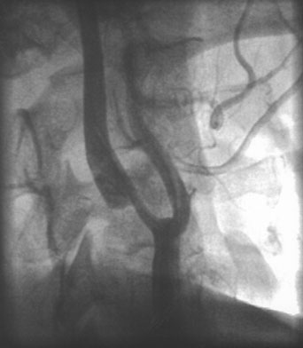Carotid angioplasty and stenting is a novel endovascular approach to revascularizing the carotid artery. As a technique, it is in its infancy, and catheter technology and distal protection devices to prevent periprocedural strokes are constantly evolving. To date, no randomized study has shown superiority of this technique over surgical endarterectomy in the average patient,83,84 although direct comparisons between endarterectomy, and angioplasty and stenting are currently underway.85 However, high-risk patients appear to do better with endovascular approaches.86 In the author's opinion, for now angioplasty and stenting should be reserved for symptomatic patients who cannot undergo surgery or generalized anesthesia because of cardiac or pulmonary conditions. Certain situations, such as radiation-induced arteriopathy, contralateral occlusion or high-grade stenosis, or contralateral vocal cord paralysis, are relative contraindications to endarterectomy; in their presence angioplasty and stenting is an appropriate therapeutic choice. An example of carotid stenting is shown in Figure 2. Vertebral artery atherosclerotic disease is a common source of stroke. It should be remembered that 20% of cerebral blood flow comes through the vertebral, and the frequency of vertebral-related strokes is approximately one-fifth of carotid strokes. Even so, imaging of the vertebral arteries is often neglected. Atherosclerosis of the extracranial vertebral artery occurs at its origin from the subclavian. Detection of vertebral origin stenosis can be achieved through ultrasound, MRA (usually of the great vessels and not of the neck), or angiography. Medical treatment is usually indicated, but endovascular revascularization with angioplasty and stenting is also feasible. Intracranial atherostenosis, namely the intracranial carotid, middle cerebral, vertebral, and basilar arteries, account for approximately 10% of all strokes.87 African Americans and Asians have a greater relative incidence of intracranial disease. The gold standard for detecting intracranial stenosis is catheter angiography, but transcranial Doppler and MRA, particularly in combination, have good accuracy. In sickle cell disease, the altered hemoglobin structure results in abnormally formed erythrocytes. These in turn may damage the endothelium and cause a non-atherosclerotic vasculopathy that typically manifests with intracranial stenosis of the terminal internal carotid artery and proximal middle cerebral and anterior cerebral arteries. These are usually found in the young. In response to the stenosis, there is formation of small and fragile collateral vessels that are reminiscent of those seen in Moya-Moya disease, another vasculopathy of unknown cause seen in Asians. Strokes affect 1% to 10% of sickle cell victims, depending on the state of the intracranial vessels. This can be determined by transcranial Doppler.88 In those with elevated flow velocities, suggesting significant intracranial stenosis, transfusion therapy to decrease the amount of abnormal hemoglobin is effective in decreasing the risk of stroke.89 It is recommended that those with sickle cell disease be screened every 6 months to establish their stroke risk.90 AORTIC ARCH ATHEROSCLEROTIC DISEASE The availability of transesophageal echocardiography has allowed the recognition of the aortic arch as a common source of embolic stroke. Those plaques that protrude more than 4 mm into the aortic lumen are associated with stroke, and the presence of a mobile element, usually representing thrombus on the plaque, is particularly dangerous.91 The choice of antithrombotic agents for this condition is not well established; many stroke experts would agree that the presence of a mobile aortic arch element, probably representing a thrombus on a plaque, warrants anticoagulation, while nonmobile plaques should be treated with antiplatelet agents. Arterial dissection is a relatively common condition that is often misdiagnosed. Injury to the arterial wall, usually in response to trauma, may lead to cerebral ischemia through various mechanisms. A tear of the endothelial surface allows blood to enter the arterial wall. If there is recanalization into the lumen, thrombotic material may reenter the circulation. When there is a large amount of blood in the arterial wall, there may be occlusion of the lumen. Distal to the occlusion, the intravascular blood stagnates and clots, usually up to the first branch of the artery (the ophthalmic in the case of carotid dissections). Thrombus may detach from the distal end of this clot and embolize to the cerebral circulation. Finally, when the dissection penetrates into the media, blood will accumulate between the medial and adventitial tunics, resulting in a dissecting aneurysm. These may act as a nidus for thrombus formation. There is often well-defined trauma preceding the dissection: contact sports and neck chiropractic maneuvers are well recognized associations. Occasionally, more subtle trauma may be responsible, such as sexual intercourse and extreme head turning. This minimal trauma, as well as the so-called spontaneous dissections in which no major injury is identified, often affects diseased arteries. The arteriopathies associated with spontaneous dissection include Marfan's disease, Ehler-Danlos IV, and fibromuscular dyplasia. There is now an increasing recognition of more subtle collagenopathies that may be better defined by future genetic studies.92 The carotid artery usually dissects in the distal extracranial carotid artery at the level of C2, where it may be injured in flexion by compression between the angle of the jaw and the vertebrae, and in extension by puncture from the styloid process or from injury by the vertebral body itself. The vertebral artery tends to be damaged at its V3 segment, where it may become trapped between the vertebral body and the base of skull, or in its interforaminal V2 portion. In the vertebral artery, the dissectio