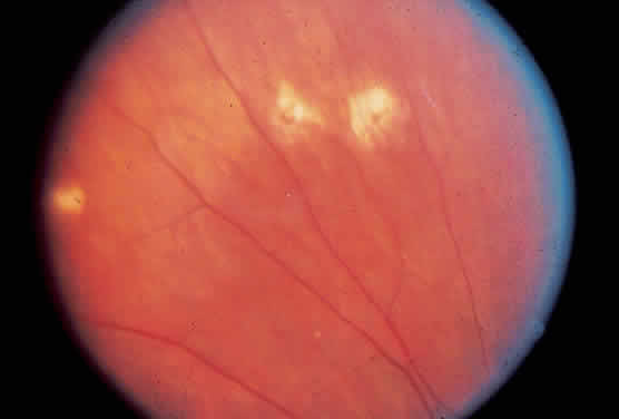 The reason for the formation of SRNVMs in the macular area in POHS, as in age-related macular degeneration, is not understood. Some investigators have postulated that an immune reaction against H. capsulatum may play a part. Others believe that the SRNVMs are just a deterioration that accompanies any break in Bruch's membrane.26 Ophthalmoscopically, SRNVMs may first appear as dirty gray-green subretinal lesions. This formation has been likened to a signet ring. The initial lesions may pro-gress to actual subretinal hemorrhage. Deposition of lipid and serous elevation of the retina may also occur as a result of increased permeability in the SRNVMs. In time, this condition progresses to an atrophic or gliotic scar, which may assume various forms. Most of the scars are white because of fibrous tissue that develops secondary to the hemorrhage. Microcystic degeneration of the sensory retina may also occur as a result of chronic serous detachment of the neurosensory retina. The visual acuity in patients who have had SRNVMs is seldom better than 20/200, unless the location of the scars is eccentric to the fovea. In one retrospective study, only 14% of untreated eyes with subfoveal neovascular networks ended with a 20/40 acuity.27 If the scar is greater than several disc diameters, the vision may fall to the counting fingers level. Just as in age-related macular degeneration, choroidal neovascular membranes may progress to massive vitreous hemorrhage. This infrequent circumstance is due to an actual hemorrhage through a break in the neurosensory retina.28,29 OCULAR MEDIA The ocular media in patients with POHS are absolutely clear of cells. No inflammatory cells can be found in either the aqueous or vitreous. Part of the reason for this lack of cells may be because the inflammatory stage has ended by the time patients are seen clinically. Another possibility is that inflammatory cells deep in the choroid have difficulty penetrating into the vitreous. This finding is in contrast to toxoplasmosis, a retinochoroiditis, in which the primary inflammation lies in the retina. Subsequently, in toxoplasmosis, cells spill over into the vitreous and aqueous. Patients who have vitreous or aqueous cells and present with peripheral punched-out lesions, peripapillary atrophy, and macular SRNVMs should be diagnosed as having multifocal choroiditis (also called pseudohistoplasmosis).30,31 The cause of the pseudohistoplasmosis syndrome has been described to include presumed sarcoidosis, possibly tuberculosis or syphilis. In about 30% of patients, no cause of multifocal choroiditis can be determined. |