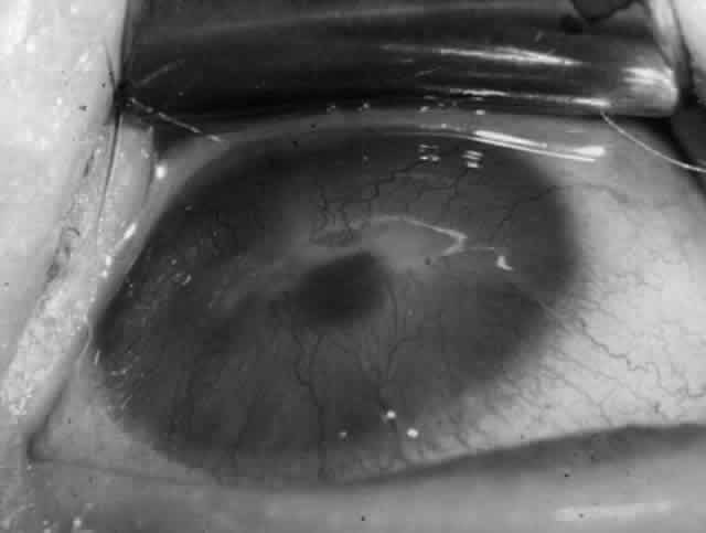 Epidemiology Males and females are affected equally by the disease,97 and there are no apparent racial, ethnic, or geographic predilections. Pathogenesis Epidermolysis bullosa is an autoimmune disease spectrum in which the patient produces an autoantibody reactive against protein(s) located in the epidermal sub-basal lamina anchoring fibril zone. Direct immunofluorescence studies of biopsied affected skin typically show IgG, IgA, IgM, and complement components deposited in a prominent linear distribution along the basement membrane zone (BMZ) of the epidermis. Subepithelial blister formation occurs as the anchoring fibrils are damaged and the basal epidermal cell attachments to the BMZ are lost. Diagnosis The diagnosis of EB is based on the clinical picture of blister formation occurring predominantly over joint surfaces, hands, feet, and other sites of minor trauma, with negative Nikolsky's sign and immunopathologic features on lesion biopsy as described above. The lesions occur predominantly on noninflamed skin and heal with scar and milia formation. Immunoelectron microscopy demonstration of immunoreactant deposition below the basal lamina distinguishes the lesion definitively from those of bullous pemphigoid. Ocular Manifestations Conjunctival involvement in epidermolysis bullosa begins with vesicle formation, leading to ulceration and symblepharon formation.107 In the cornea, recurrent erosions occur that lead to vascularized scars (Fig. 18). Histologically, the epithelium exhibits vacuolation, particularly of the basal cell layer. The epithelium is poorly adherent to Bowman's membrane, whereas the remainder of the corneal structure is essentially normal.108 McDonnell reported that 8 of 11 patients with the dystrophic form of epidermolysis bullosa had ocular abnormalities, including conjunctival shrinkage, with symblepharon formation and corneal opacities.109 The authors remarked that these abnormalities were slowly progressive, and that except for recurrent corneal erosion, the patients were ocularly asymptomatic. Other ocular histopathologic changes have been noted in epidermolysis bullosa letalis by Aurora and co-workers.110 They have described a patient exhibiting edema of the trabeculum, iris, ciliary body, lens, and optic nerve. Focal edema and necrosis of the choroid and retina as well as total retinal detachment were also present in this patient. Citing research by other workers, these authors suggest that some of the ocular changes observed in epidermolysis bullosa may be due to focal accumulation of a proteolytic enzyme, possibly collagenase. Zierhut and associates, using modern criteria for the definitive diagnosis of epidermolysis bullosa acquisita (EBA), reported the case history of a 23-year-old man with EBA who developed bilateral tiny corneal subepithelial vesicles.111