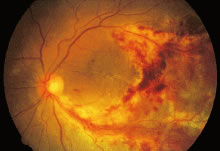 Noninfectious Microvasculopathy Noninfectious retinal lesions associated with microvascular abnormalities (cotton-wool spots, retinal hemorrhages; known as HIV retinopathy) are the most common ocular findings reported in people with HIV infection (Fig. 2). The extent and severity of these retinal findings are greater in patients with AIDS than in iatrogenically immunosuppressed people who occasionally have similar lesions.96 The presence of HIV retinopathy is related to overall immune status; asymptomatic HIV-infected patients rarely have clinically apparent lesions, but nearly all patients with advanced AIDS have some degree of HIV retinopathy.97,98 In addition to cotton-wool spots and retinal hemorrhages, clinical manifestations include retinal capillary microaneurysms, white-centered hemorrhages, telangiectasias, and capillary nonperfusion.87–89,97,99,100 Cotton-wool spots occur in the posterior pole and are seen as superficial white patches with feathery edges that sometimes obscure underlying retinal blood vessels. They are caused by stasis of axoplasmic flow within the retinal nerve fiber layer, as a result of ischemia, either because of precapillary arteriolar occlusion or reduced blood flow.101 Cotton-wool spots tend to resolve over 4 to 6 weeks. Affected patients are rarely symptomatic. Microaneurysms are found clinically in only about 20% of patients but are detected in eyes of nearly all patients with AIDS when studied by fluorescein angiography or by trypsin digestion of retinal tissue at autopsy.96,100,102 Ischemic maculopathy has been reported rarely.100 Noninfectious microvasculopathy is also the most common ocular manifestation of HIV-2 infection, and affected people have a shorter survival that HIV-2-infected people without microvasculopathy.92 The underlying abnormality of HIV retinopathy is disease of the retinal vasculature. Trypsin digest preparations and ultrastructural studies reveal selective loss of pericytes, microaneurysm formation, swollen endothelial cells, occluded vascular lumina, and thickened basal lamina,96,100 similar to findings in diabetic retinopathy. Fluorescent microsphere infusion studies have identified breaches in microaneurysms of 200 nm or more, even in the absence of visible hemorrhage; these defects might play a role in the passage of CMV into the retina with development of CMV retinitis.103 The cause of noninfectious microvasculopathy is unknown and likely multifactorial. HIV has been identified within retinal endothelial cells but not in amounts sufficient to account for the widespread changes seen.104 Other proposed mechanisms include deposition of circulating immune complexes,100 release of cytotoxic substances such as monokines or proteolytic enzymes104 and abnormal blood flow.101 Slowing of blood flow probably further contributes to the focal ischemia that results in periodic development of cotton-wool spots.101 The presence of both cotton-wool spots and conjunctival microvasculopathy, consisting of dilated capillaries, vessels of irregular caliber, and sludging of blood flow, has been related to elevated fibrinogen levels and red blood cell aggregation but not with levels of circulating immune complexes or immunoglobulin.101 People infected with HIV have increased neutrophil rigidity, which may also slow blood flow and contribute to microvascular damage.105 Souza Ramalho and associates106 reported a patient with HIV-2 infection and noninfectious retinal vasculitis who had elevated plasma viscosity and red blood cell filterability, both indices of abnormal blood flow. The patient's clinical and hemorheologic status improved following treatment with prednisone and chlorambucil. Less commonly, occlusion of larger retinal blood vessels (macrovasculopathy) can occur. Both retinal artery and vein occlusions have been reported, with a prevalence greater than would be expected for age-matched controls.99,107 Hypertension and thrombotic disease are found in a high proportion of affected patients. Other causes of noninfectious microvasculopathy, such as diabetes mellitus or hypertension, should always be considered. Patients with both diabetes mellitus and HIV disease may have particularly severe noninfectious retinopathy. Reports of hyperlipidemia, glucose intolerance, and accelerated vascular disease among patients treated with protease inhibitors108 have raised concerns that retinal vascular disease may become more frequent in HIV-infected patients. For example, lipemia retinalis has been found in a patient treated with protease inhibitors who had hyperlipidemia.109 Ocular Opportunistic Infections CMV RETINITIS. CMV retinitis is by far the most common intraocular infection in people with AIDS.99,110 CMV retinitis is rarely the first manifestation of AIDS111,112; most affected patients have CD4+ T-lymphocyte counts of less than 50 cells/μl at diagnosis.111,113 One study found that 85% of people with extraocular CMV infection developed CMV retinitis after a mean follow-up period of 6.4 months.114 Other risk factors for the development of CMV retinitis include high HIV levels in the blood, a previous AIDS-defining illness, homosexual activity as the route of HIV infection, lack of protease inhibitor therapy in antiretroviral regimens, high CMV levels in the blood, and CMV seropositivity.115 Up to 40% of patients with advanced HIV disease developed CMV retinitis in the era before potent antiretroviral therapy.110,111,115,116 Since the introduction of these drugs, the rate is much lower,117 probably on the order of 5% or less. The decline in frequency may reflect not only the widespread use of potent antiretroviral therapy but also the changing demographics of AIDS; heterosexual men are less likely than homosexual men to develop CMV retinitis,perhaps because homosexuals have a higher rate of pre-existing CMV infection.115 Nevertheless, CMV retinitis remains a major cause of morbidity in HIV-infected people. It is especially important to diagno