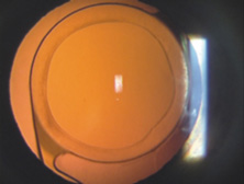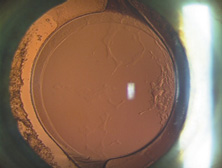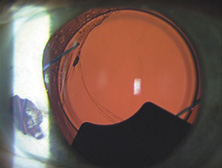 This lens design revolutionized the concept of IOL placement, but the need for a supportive capsular bag architecture was not fully appreciated, nor had the techniques to preserve it been developed. Most dislocations were incomplete (i.e., nonintravitreal). For example, the sunset syndrome (Fig. 10) resulted from occult anterior radial capsular tears (ARTs), which extended through the equator or inferior zonular disruptions and allowed the inferior haptic to sink through the defect. However, in most inferior dislocations, the IOL optic was still contained within the ciliary sulcus. The IOL's overall length was too short for symmetric sulcus fixation, so the whole IOL structure gravitated inferiorly with sulcus placement. The “windshield wiper syndrome” resulted from sulcus contact inferiorly but none superiorly. Surgeons tried to retain at least a leaflet of anterior capsule inferiorly in which to place the inferior haptic. When that was accomplished, the IOL stayed fairly well centered. However, if asymmetric placement occurred with the inferior haptic contained within the capsular bag remnant and the superior haptic loose in the ciliary sulcus, there would be opportunity for another type of decentration, the sunrise syndrome.