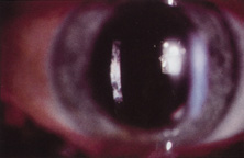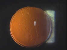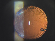 The most recent lens has had problems, but earlier models had ametropia, pupillary block, decentration, pigment dispersion, increased intraocular pressure, and cataract formation. The ICL is a single-piece plate design. The lens can be folded and inserted through a suture less corneal incision smaller than 3.0 mm. The myopic lens has an optical zone varying between 4.5 and 5.5 mm according to the power required. It is 7.0 mm wide and 11.0 to 13.0 mm long, with differences of 0.5 mm between different lengths. The lens is supplied in powers ranging from –3.00 to –20.50 D. Required are high predictive accuracy of the ciliary sulcus dimension, preoperative peripheral iridotomies, an AC depth working space of 2.8 mm, and a 3-mm clear corneal incision. It has been used successfully to improve vision in children with refractive amblyopia in whom traditional treatment had failed.187 It is currently awaiting FDA approval in the United States. Medennium Phakic Refractive Lens The Medennium phakic refractive lens is not available in the United States, but it is available in Europe. The phakic posterior chamber IOL manufactured by IOLtech (formerly Ciba Vision Corp.) is termed the phakic refractive lens (PRL) (Duluth, GA). It is manufactured from a clear silicone, with a refractive index of 1.46 and an overall length of 10.9 and 11.3 mm. A major feature of this lens is said to be that the hydrophobic nature of its material associated with aqueous flux dynamics would maintain the lens away from contact with the anterior capsule of the crystalline lens. The IOL would “float” on the natural lens, and “no touch” on this ocular structure would be observed even during accommodation. Lens opacification has been shown to occur in up to 14.5% of patients with other minor complications less frequent.188,189 Dislocation into the vitreous cavity because of zonule disruption is rare but has been reported in several cases190 (Figs. 72 and 73). BIOPTIC A serial combined procedure called Bioptic combines the creation of a corneal flap with a microkeratome and phakic IOL implantation.191 Three to five months later, the flap is lifted and a final refinement is added to the overall correction with the excimer laser (Fig. 74). The flap is made before IOL implantation because of the risk of endothelial damage when the AC shallows when the suction ring is placed and the suction is activated. LASIK or IntraLASIK after implantation with the Verisyse IOL should not present such a problem because the AC deepens with application of the suction device. |