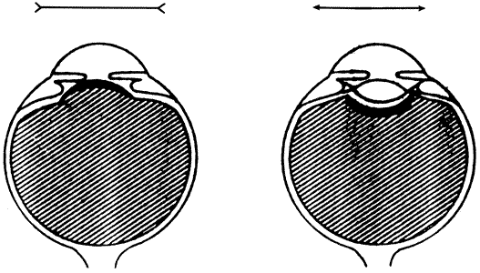 factor is discussed in more detail in the section on silicone oil. Treatment of detachments caused strictly by macular holes is successfully approached with intraocular gas bubbles.86,87 When the vitreous is separated from the posterior segment, vitrectomy is not required for lasting retinal reattachment. Strict face-down patient positioning is required. Because of the expansile properties of the perfluorocarbon gases, small volume injections are made without requiring drainage of subretinal fluid. Vitrectomy can be employed when vitreoretinal traction is present. The retina usually remains adherent after reattachment without use of laser treatment around the macular hole. In some difficult recurrent cases, laser treatment around the reattached retinal hole will maintain retinal reattachment. Face-down positioning was maintained for 8 to 11 days in tolerant patients. This was based on the notion that a firm adhesion between the neurosensory retina and the retinal pigment epithelium takes 8 to 11 days to form after treatment with laser or cryopexy. The use of intraocular gases to tamponade the retina in PVR has become extremely important. There has been a suspicion that even SF6 did not provide a long enough tamponade to develop sufficient adhesion to counter the epiretinal, subretinal, and transvitreal traction forces of PVR.88 Perfluoropropane has been proven to give superior results in tamponading postvitrectomy PVR cases. Of 18 patients treated with vitrectomy and perfluoropropane, in the successfully reattached cases, there was an average bubble reabsorption time of 92 days, whereas those with failed cases had an average reabsorption time of 62.7 days.89 Surgeons generally seek nearly total fill with a long-acting gas bubble. Nonexpansile or only slightly expansile concentrations of the gas are used to avoid extremely high pressures that could cause central retinal artery occlusion. It is important to monitor these patients postoperatively so that some gas can be removed to relieve elevated pressure. Although applanation tonometry is the most accurate means of following intraocular pressure, visual acuity monitoring for the loss of light perception by the nurse or by the patient can be used as the earliest sign of excessively high pressure. In measuring intraocular pressure in patients with a gas bubble, large displacement tonometry such as Schiotz tonometry gives falsely low values. A correction factor based on the size of the gas bubble is necessary. Applanation technique such as Goldmann tonometry or the use of electronic penlike devices is much more accurate. With large bubbles used in PVR surgery, face-down positioning is important to prevent gas block glaucoma and to minimize the risk of peripheral anterior synechiae formation. The higher surface tension and higher buoyant forces of the intraocular gas bubbles relative to silicone oil result in better internal tamponade with a gas bubble. The volume of the gas bubble is constantly decreasing, however, a silicone oil bubble remains at constant volume. The gas bubble volume can be easily supplemented using an outpatient fluid–gas exchange if the bubble is too small or disappearing too rapidly. The most frequent complication of PVR surgery is recurrent PVR and retinal redetachment. In the cases that remain attached, macular pucker is the most frequent complication (seen in 30% of patients).90 These complications are not due to a toxic effect of the gas but seem to be due to the displacement of fluid, which may concentrate proliferative factors near the retinal surface. The use of gas has been generalized to treatment of any retinal break at the end of vitrectomy.91 Although retinal breaks do not routinely require gas tamponade in a simple scleral buckling procedure, the situation is different after vitrectomy. The replacement of slightly viscous vitreous fluid and more viscous subretinal fluid with low viscosity BSS permits transitional and more turbulent flows with ocular motion. These flows create detachment forces around retinal breaks. Furthermore, these flows persist longer because of prolonged damping times in lower viscosity fluids. If small or even large amounts of subretinal fluid remain at the end of the vitrectomy, the retina can be flattened postoperatively by the gas bubble with appropriate prone or lateral positioning. To illustrate the advantage of stabilization of retinal motion by leaving the viscous subretinal fluid in place until the end of vitrectomy but before fluid–gas exchange, visualize two jars with a tissue suspended in fluid in each. One jar has water in it, the other jar has honey in it. Twist both jars rapidly a few times, then wait for the fluid motion to stop. Obviously, the jar with honey in it will have the fluid motion come to rest much more quickly. The decay times are proportioned to the reciprocal of the square root of the Ekman number.92 The Ekman number is a measure of comparison of viscous forces to Coriolis forces in such a system. In a system with relatively fixed rotational and physical properties such as the eye, the damping time will be proportional to the reciprocal of the square root of the viscosity of the subretinal fluid. A viscous subretinal fluid may have a viscosity of around 100 cp while BSS has a viscosity of 0.7 cp. Thus the damping time would be 12 times shorter and stabilization of the retina would be 12 times greater with the subretinal fluid in place. Pneumatic retinopexy is frequently substituted for scleral buckling for retinal detachments in which there is a small number of tears in the superior 8 clock hours. There are reports of reattachments with inferior tears and also with tears at multiple clock hours superiorly.93 These techniques require either face-down positioning for the inferior tears or sequential postural positions for two or more tears at significantly different clock hours. When pneumatic retinopexy is used for one or more tears all located within 1