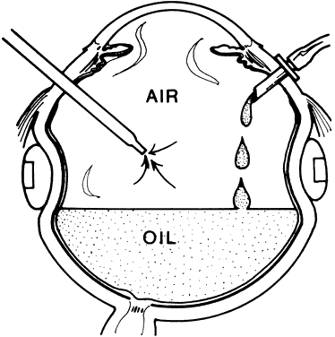 an air-fluid exchange. Perfluoro-n-octane (Perfluoron) and perfluoroper-hydrophenanthrene (Vitreon) are two