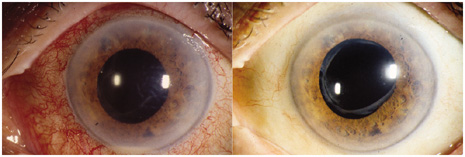 include fibrin in the anterior chamber and on the intraocular lens, corneal