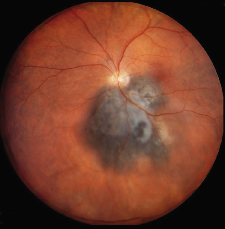 even large uveal melanoma up to approximately 12 mm in thickness (Fig. 3). 34 Shields and co-workers found that plaque radiotherapy for large melanoma
