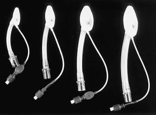 An LMA is commonly used for eye surgery (Figs. 2 and 3). This mask is placed in the pharynx above the epiglottis, so it does not protect the lungs from aspiration. The LMA was developed by A. Brain in England and became popular in the United States in the 1990s. A reinforced form of LMA is also available.