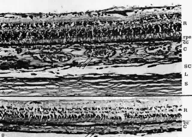 layers are designated as follows: the innermost layer of capillaries (the choriocapillaris), the middle layer of medium-sized vessels (Sattler's layer), and the outer layer of large vessels (Haller's layer) (Fig. 4). These three layers are most evident posteriorly.