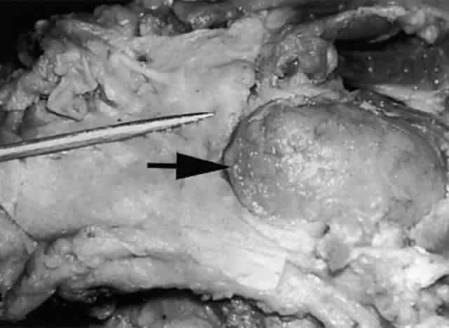 GROSS ANATOMY OF THE EXCRETORY SYSTEM The Membranous Passages Tears, secreted from the lacrimal gland in the superolateral region of the conjunctiva, spread over the surface of the globe by two processes: (1) eyelid movement; and (2) gravity. The tears then collect in the lacrimal lake at the medial aspect of the conjunctival fornix. They then pass by capillary attraction into the lacrimal puncta and the lacrimal canaliculi. Aided by the lacrimal pump mechanism and gravity, fluid then passes into the common canaliculus and the lacrimal sac. Fluid continues downward into the nasolacrimal duct, emptying into the inferior meatus of the nose under the inferior turbinate bone.2,18 Punctum The canaliculus begins as the punctum, surrounded by a strong, fibrous ring known as the lacrimal papilla. The papilla and the included punctum, which has an average diameter of 0.2 to 0.3 mm, are located at the myocutaneous junction of the nasal aspect of the eyelid margin. The papilla (Fig. 18) is slightly elevated relative to the surrounding tissue and becomes more prominent with age because of atrophy of the encircling tissue.2,6