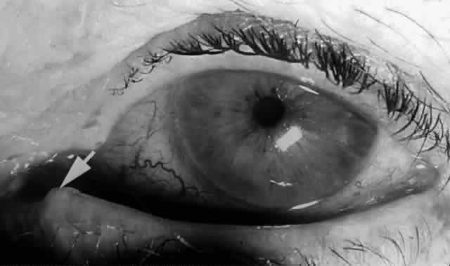 open puncta to lie in contact with the lacrimal lake. Aided by capillary