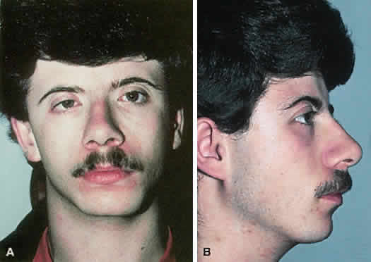 PREOPERATIVE COMPLICATIONS In the early era of craniofacial reconstruction, surgical repair was delayed until the child was older. It was originally thought that surgery at an early age could have deleterious effects on craniofacial growth and was too risky for such young patients. Now surgery may be performed between 6 and 12 months of age thus permitting use of full-thickness cranial bone graphs. These donor sites will regenerate bone at this early age and cranial bone has a much lower resorption rate than rib grafts, although it cannot be bent or molded so easily. Surgery is often performed in stages to take advantage of different craniofacial growth patterns. For example, a typical staging for Apert's syndrome may involve craniovault surgery in infancy, followed by midfacial advancement in childhood to increase the intracranial and intraorbital volume further and improve the nasal airway and self-image; orthognathic surgery in adolescence can improve occlusion and speech.34 Severe synostosis may require craniovault remodeling within the first few months of life, whereas less severe cases are treated between 6 to 12 months of age.198 One must also consider positive contributions to psychosocial development that early surgery may provide. Studies suggest that unattractiveness and infant facial deformities may affect the quality of parental-infant interactions as well as produce emotional stresses as the child interacts with other children outside the household.199 As previously emphasized, the ophthalmologist must manage two major areas of importance: amblyopia prevention and corneal protection. Other members of the craniofacial team may be more concerned with more urgent concerns and may inadvertently overlook these issues. Thus, the ophthalmologist must continually monitor these patients to prevent any potential loss of vision. The ophthalmologist's expertise may also be called on for intraoperative advice. The anterior two thirds of the orbit are frequently dislocated and mobilized in craniofacial procedures and may fortunately lead to severe intraorbital complications. These surgical techniques are performed using a bicoronal approach, often combined with an anterior craniotomy, to gain access to the medial, lateral, and superior orbits. The orbital floor is approached through a transconjunctival or subciliary route. Mobilization of the orbital contents is achieved through a subperiosteal dissection and by fracturing all four orbital walls approximately 15 mm anterior to the orbital apex. This allows the orbit to be shifted anteriorally or in any needed direction. Perhaps the most devastating intraoperative complication is intraorbital hemorrhage with increasing orbital pressure, optic nerve compromise with pupillary dilation, and potential central retinal artery occlusion and subsequent visual loss. Bone grafts or sharp surgical instruments may inadvertently perforate the globe or injure the optic nerve. The ophthalmologist should be prepared to perform intraoperative pupillary examinations, ophthalmoscopy and drain or manage intraorbital hematomas. Fortunately, intraoperative complications are rare. SURGICAL TIMING The types of surgical procedures for the various ophthalmic problems encountered in congenital craniofacial syndromes generally follow the basic tenets that govern their use in other patients. Early surgical intervention is indicated in conditions that may lead to visual or ocular loss such as severe corneal exposure, optic atrophy, entropion, or severe ptosis. In the following discussions of these principles, little time is spent on the specific operative techniques. Instead, emphasis is directed at the general principles of surgical management. Corneal Exposure Corneal exposure in craniofacial patients is common and may be severe enough to compromise the integrity of the globe and the vision itself. The two most common conditions responsible for this are (1) lid colobomas that fail to cover the cornea and (2) exophthalmos severe enough to prevent closure of the eyelids. Either situation necessitates immediate medical therapy with aggressive lubrication and if necessary, occlusive devices such as plastic food wrap. Although medical therapy may be adequate, it is normally used only as a temporizing measure until definitive surgical therapy can be instituted. In addition, the clinician ought be conscious of causing amblyopia with prolonged administration of ointments and protective dressings. Shallow orbits associated with Crouzon's and Apert's syndromes may cause severe exophthalmos. If lid closure is prevented by severe proptosis and corneal exposure threatens the integrity of the globe, orbital advancement surgery to enlarge the bony orbit may be performed within the first few weeks of life. Fortunately, the globe is usually not immediately threatened and alternative measures are sufficient. These include ocular lubrication, moisture chambers, temporary suture tarsorrhaphy, or large lateral tarsorrhaphy. When the globe is severely proptotic, upper and lower lid retractors may need to be disinserted to ensure success of the tarsorrhaphy. In the case of lid colobomas, surgical intervention is delayed until at least 6 months of age if the integrity of the cornea is not threatened. Sliding or rotational flaps are preferable to lid-sharing techniques in the pediatric population because of the concern of deprivation amblyopia. Similarly, use of postoperative occlusion dressings should be kept to a minimum. The primary goal of initial surgery is to restore function whereas secondary procedures should address cosmetic concerns such as lid contour on ptosis. Canthal Deformities Canthal dystopias can usually be repaired at the time of initial craniofacial surgery. Medial canthopexy to address medial canthal dystopias and transnasal wiring to correct telecanthus are readily permitted at this time because of the excellent exposure and easy access to the nasal area. Lateral canth