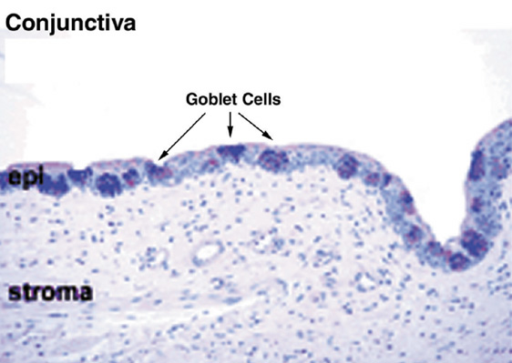 the conjunctival surface are numerous mucin-secreting goblet cells and