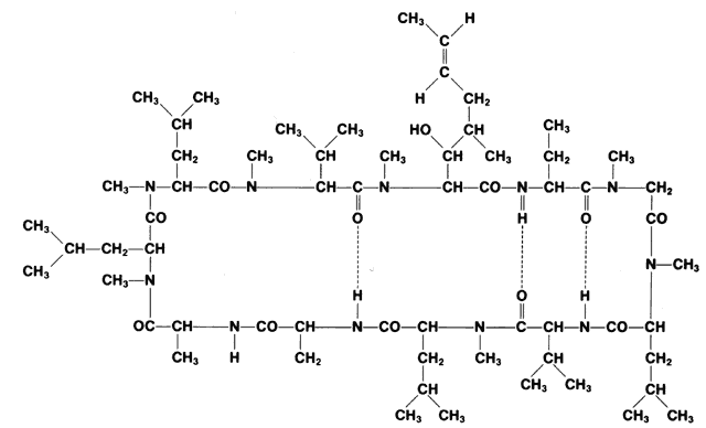 cyclic peptide (Fig. 3). Cyclosporine appears to be absorbed incompletely from the gastrointestinal