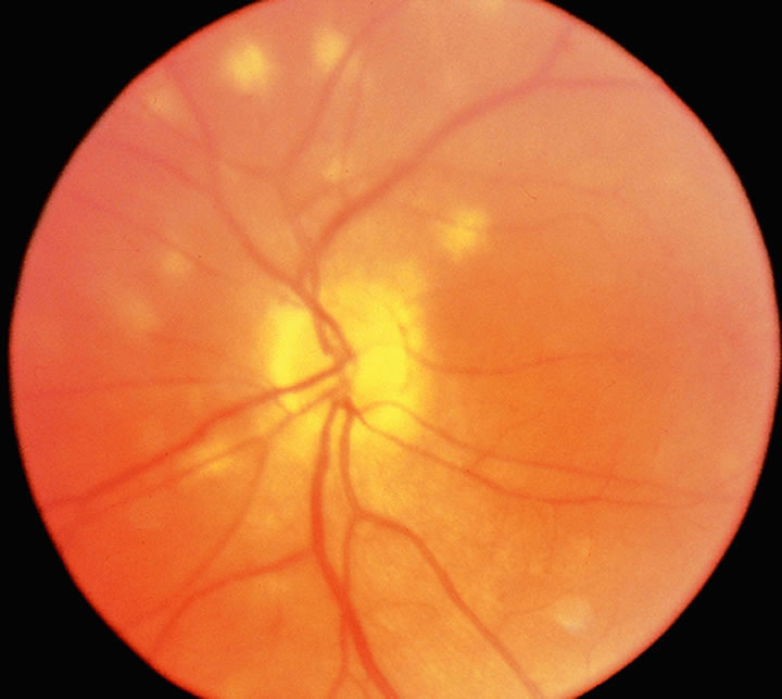 Reiter's Syndrome Reiter's syndrome is a postinfectious autoimmune disease that has strong associations with the HLA-B27 locus. The classic triad of polyarthritis, papillary conjunctivitis, and urethritis, as well as highly characteristic mucocutaneous lesions, are the most specific signs of Reiter's syndrome.66 Uveitis and iritis are also prominent ocular findings of this disease. Sexually transmitted chlamydial infection, or acute dysentery resulting from gram-negative organisms such as Klebsiella, Salmonella, Shigella, or Yersinia species often precedes the development of joint inflammation, hence the term “reactive arthritis.” Thirty-five percent of patients with sexually acquired reactive arthritis (SARA) following nongonococcal urethritis have conjunctivitis and other lesions characteristic of the full complex of Reiter's syndrome. There are a variety of theories to explain the role of HLA-B27 in the pathogenesis of reactive arthritis. It is likely that the features of HLA-B27 as an antigen-presenting molecule; the possible role of the free B27 heavy chains; and the ability to bind long extracellular peptides, as well as the single cysteine at position 67 in the peptide chain, may all play a role in the pathogenesis.113,79 Birdshot Chorioretinopathy Birdshot chorioretinopathy is a clinically distinct form of chronic posterior uveitis with bilateral, multiple, hypopigmented postequatorial retinal pigment epithelial (RPE) and choroidal inflammatory lesions (Fig. 4). This disease is often complicated by cystoid macular edema, posterior synechiae, cataract, and vitreitis. The association between birdshot chorioretinopathy and HLA-A29, which has been documented as high as 95.6% with a RR factor of 224.35, is probably the strongest established to date for any disease.81,82