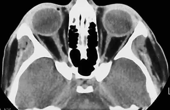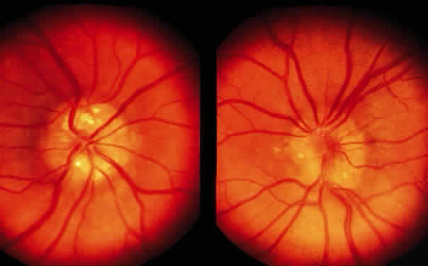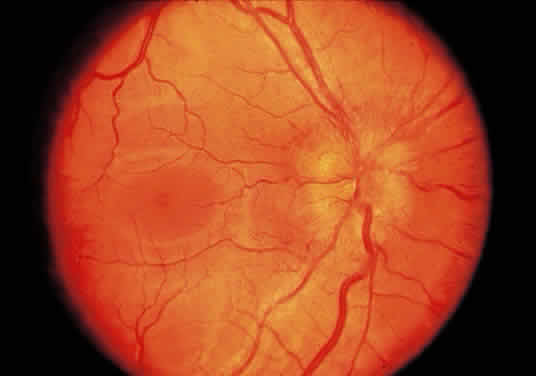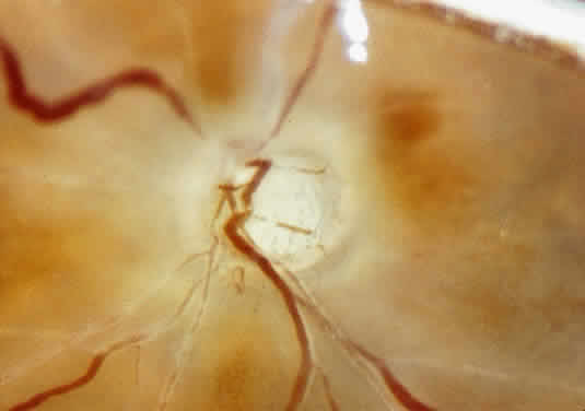 Prelaminar disease (e.g., hypotony secondary to trauma or uveitis, acute angle closure and vascular disease) that is local or systemic may also be accompanied by a swollen disc head. Venous stasis, retinopathy, and hypertensive retinopathy are other frequent causes. Microscopically, the earliest changes consist of a transudate in and between the axons, with accumulation of mitochondria. As a result, the nonmyelinated axons are separated and there is an anterior bowing of the lamina cribrosa. The optic cup appears shallow and the sensory retina is displaced laterally, so that the blind spot is enlarged. The vessels are congested, particularly the veins. Any hemorrhages that occur are predominantly in the nerve-fiber layer around the disc margin. Edema fluid may accumulate in the subarachnoid space of the optic nerve. Persistence of an edematous disc is accompanied by the appearance of cotton-wool spots and eventually atrophy of the axons. Loss of axons and myelin leads to proliferation of astrocytes or gliosis. Optic neuropathy is a general term that is applied to optic nerve dysfunction. It may be caused by a variety of conditions such as ischemia (e.g., giant cell arteritis, compression by tumor); metabolic diseases (e.g., diabetes mellitus); drug toxicity (e.g., chloramphenicol); and vitamin deficiencies (e.g., B12 deficiency). Inflammation of the optic nerve may be secondary to bacterial and mycotic infections of adjacent anatomic structures (eye, sinus), or it may occur as a part of a systemic infection, particularly in an immunosuppressed patient (Fig. 23). Clinically, there is unilateral acute blurred vision, with pain or discomfort on movement or palpation of the globe. On examination, visual acuity with a central scotoma is decreased to colored objects but the disc appears normal. Classification depends on ophthalmoscopy topography (Table 1).