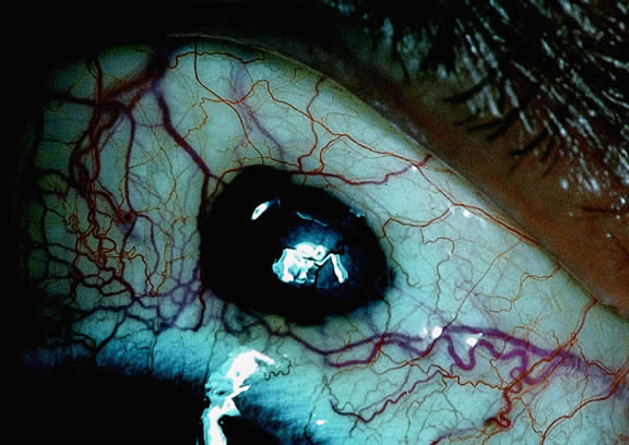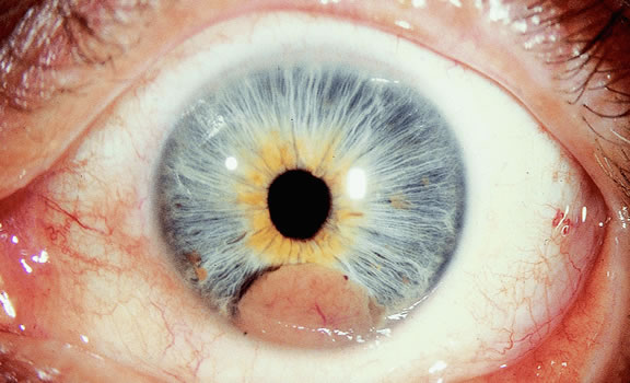 pigmented eyes. Increasing intensity of uveal pigmentation (and eye color) are