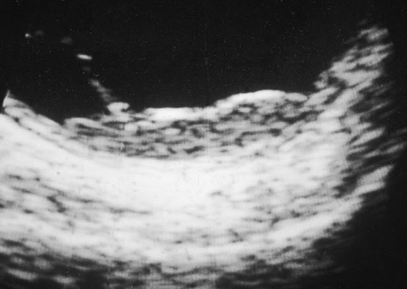 Idiopathic uveoscleral calcification occurs occasionally in the eyes of older patients and may be confused with choroidal metastasis or an amelanotic melanoma.288–290 It usually is found in the superotemporal quadrant in the vicinity of the insertion of the superior oblique tendon. |