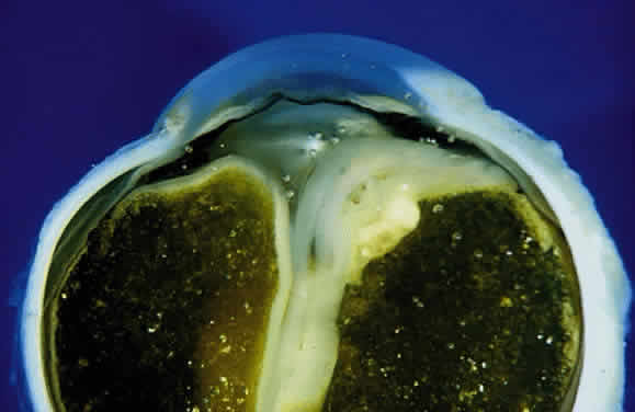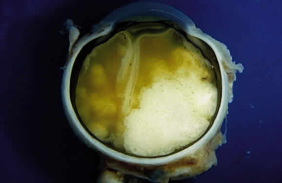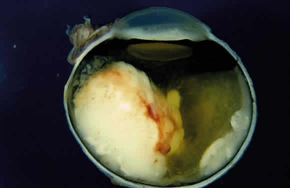 | The gross appearance of retinoblastoma is somewhat variable, reflecting