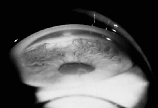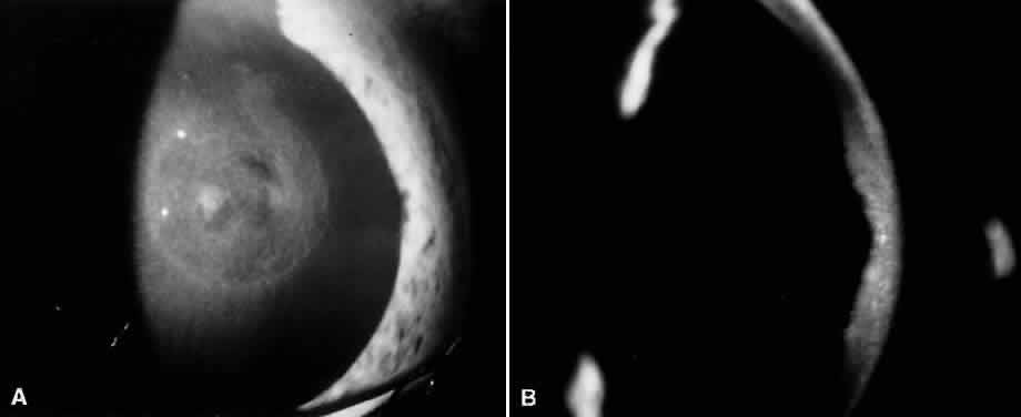 facing toward the anterior chamber (Fig. 9).111 The anterior corneal surface is normally sculpted. Vision may be normal