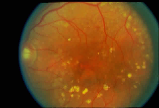 Clinically, advances in the molecular pathogenesis of Leber's hereditary optic neuropathy have had a major impact in the management of this disease. For patients with a family history of the disease, mitochondrial DNA mutations can be identified, and the visual prognosis depends on the type of mutations present. For sporadic cases, the diagnosis of this disease can also be established through the identification of mitochondrial DNA mutations. Many questions still remain, however. The molecular studies fail to account for several features of Leber's hereditary optic neuropathy, such as male dominance of the disease, reduced penetrance, later age of onset for women, and the apparently healthy state of many carriers of the mitochondrial DNA mutations. Linkage studies have been reported that show X-chromosome involvement, which may explain the male dominance of this disease271,272; however, these studies have not been confirmed.273–275 The recurrence risk of the disease in genetically defined Leber's hereditary optic neuropathy is still difficult to assess accurately.258 Despite the success in identification of the molecular defect of the disease, very little progress has been made with regard to treatment. The use of steroids, hydroxocobalamin, or cyanide antagonists has not proved effective.276–280 Molecular studies of this fascinating genetic disease have, however, significantly advanced the field of mitochondrial genetics and will continue to provide a rare opportunity to delineate the molecular pathogenesis of this disease.281 MACULAR DEGENERATION Macular degeneration comprises a heterogeneous group of disorders characterized by progressive degeneration of macular and retinal pigment epithelium and loss of central vision (Fig. 10). Age-related macular degeneration (ARMD) is the leading cause of legal blindness in patients older than 65.282–284 There is a strong genetic predisposition to macular degeneration, 20% of persons with ARMD having a significant family history.285 There is a significantly increased risk of ARMD developing in a person if his or her twin or first-degree relative is affected.286–288 Despite the evidence of genetic susceptibility to ARMD, identification of the underlying genetic causes has remained a challenging task to ophthalmic researchers. In the past few years, however, significant progress has been made in this field, particularly with regard to several inherited forms of macular degeneration. One form of macular degeneration that has been extensively studied with the use of molecular techniques is North Carolina macular dystrophy.289 The disease has been so named based on an apparent founder effect in the Carolinas more than 200 years ago.289,290 Clinically, North Carolina macular dystrophy is an autosomal-dominant disease with congenital or infantile onset. These patients exhibit macular drusen and decreased central vision. The gene responsible for this disease has been mapped to human chromosome 6q16.21,291–294a Best's vitelliform macular dystrophy is an autosomal-dominant disease. First to describe this disorder, Best295 found that these patients typically exhibited yellow, round subretinal lesions similar to an egg yolk or in some cases to a pseudohypopyon (Fig. 11). The lesions are located in the fovea and are often bilateral, measuring approximately one to two disc areas in size. Approximately 10% of eyes have multifocal lesions in the extrafoveal region. Patients with this disease often have a normal electroretinogram but an abnormal electro-oculogram. Carriers of this disease may have an abnormal electro-oculogram despite having normal fundi. The foveal lesion may degenerate, potentially resulting in macular choroidal neovascularization, hemorrhage, and scarring. In the scar state, it may be indistinguishable from ARMD.