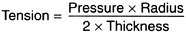 An inflated surgical glove or balloon (Figure 11-2) illustrates this relationship. The palm of the glove has relatively high tension and the thumb relatively low tension, though the pressure within the glove is equal at all locations. The thumb has low tension because the radius of curvature is small and the thickness large relative to the same factors at the palm. In the eye, tension is lower in the cornea or optic cup than in the sclera. An eye under slowly increasing pressure usually ruptures beneath the lateral rectus where the sclera is thinner, as the tension equation would suggest. A precipitous pressure rise due to trauma (eg, a blow from a club) frequently ruptures the eye at the limbus owing to the anvil effect of the more viscous vitreous. C. Strain: Strain is stretch or displacement per unit length. A strain gauge measures displacement. Strain can result in damage and in the body can cause both pain and damage. Using the belt analogy, strain is the stretch per unit length of the belt resulting from the tension in the belt caused by the pressure of the abdomen. Young's modulus E is used for determining the elastic properties of structures such as cables, pressure vessels, submarines, biologic cells, unicellular organisms, and eyes. E is defined as the tension required to stretch a material of unit cross section to double its original length. This is represented by the following equation: